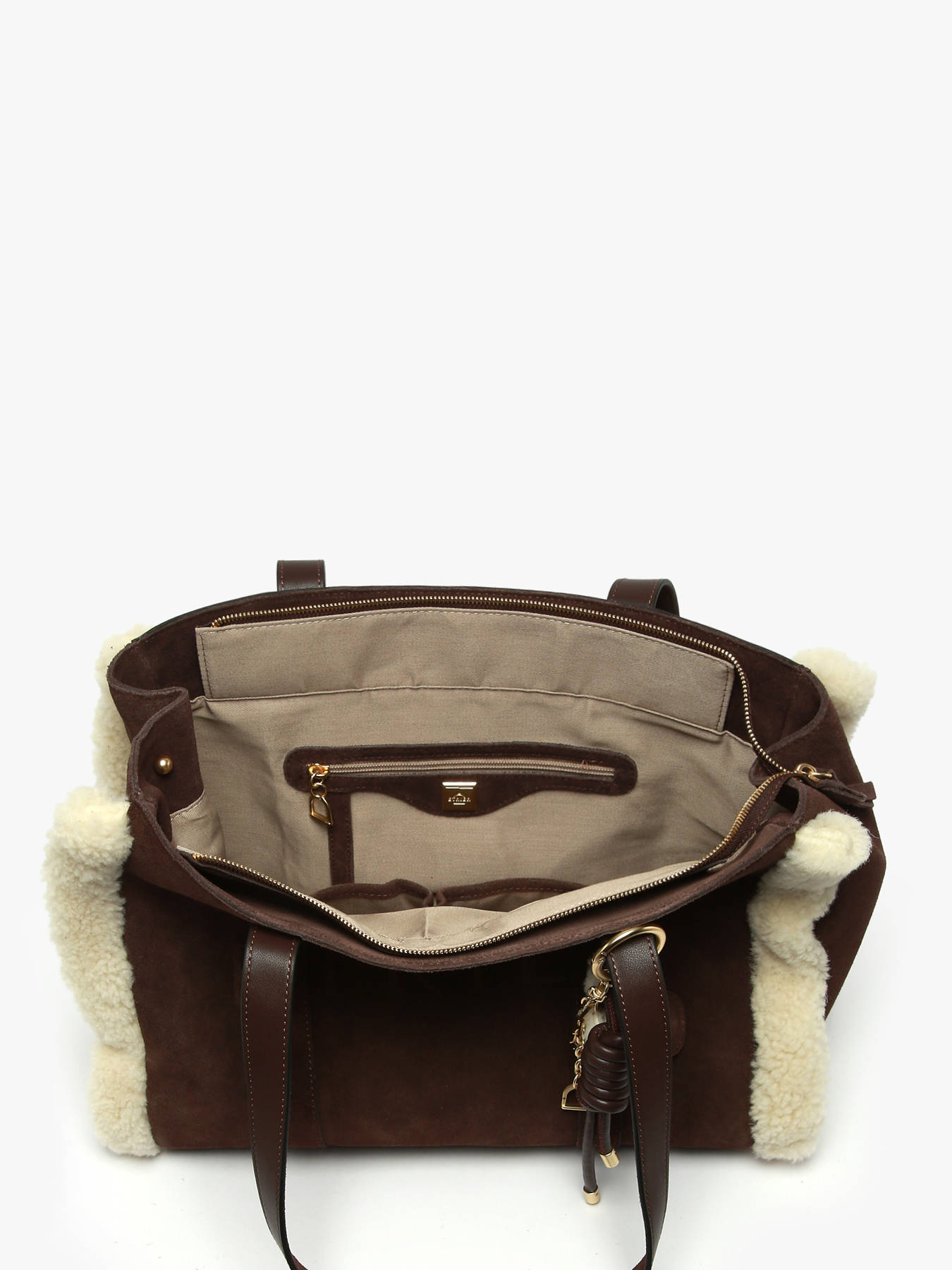 Le cabas de la ligne ALPIN par ETRIER séduit par son allure chaleureuse et son esprit hivernal. Confectionné en cuir velours et garni de mouton, il allie douceur et style authentique. Le dos en cuir lisse renforce sa robustesse au quotidien. Ce cabas zippé, au format généreux compatible A4, peut accueillir un ordinateur jusqu’à 13 pouces. Pratique et bien pensé, son intérieur comprend deux poches simples et une poche zippée pour une organisation optimale. Les détails signature de la ligne se retrouventt dans le porte-clé façon grigri accroché à l’extérieur, reprenant les codes emblématiques d’ETRIER et de la collection ALPIN : moufle, étrier, et lettres du nom. Un sac cosy et fonctionnel, idéal pour affronter l’hiver avec élégance.