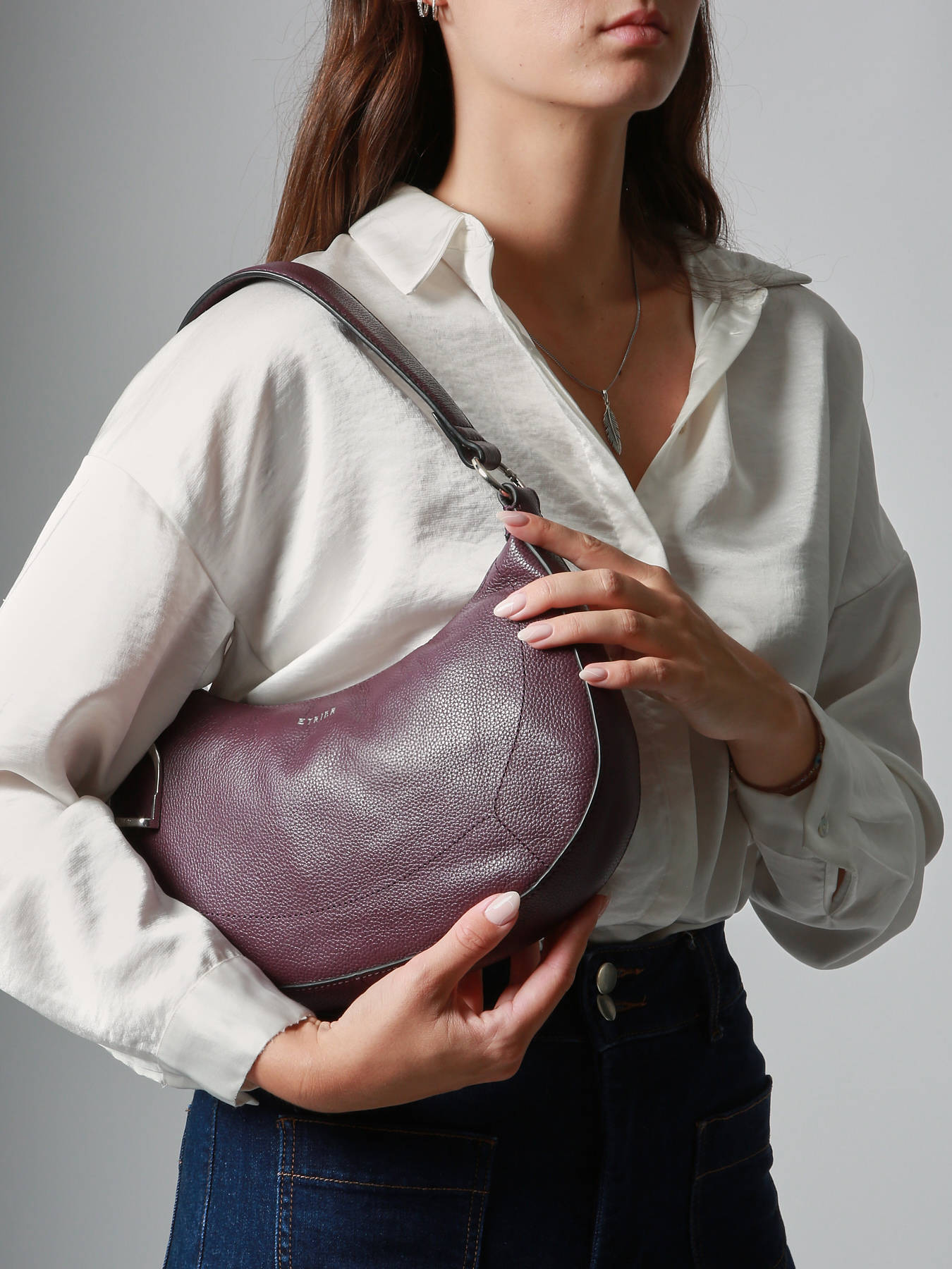 Le sac porté épaule ETRIER de la ligne ALTESSE présente une silhouette demi-lune, souple et moderne. Confectionné en cuir de vachette grainé de qualité, il se ferme facilement à l’aide d’une fermeture zippée. Doté d'une anse en cuir et d'une bandoulière tissée ajustable et amovible, il offre une polyvalence de portée à l'épaule ou en bandoulière. Les surpiqûres ton sur ton ajoutent une touche d'élégance. À l'intérieur, il dispose de deux poches simples, une poche éclair et un compartiment pour une organisation optimale de vos affaires.